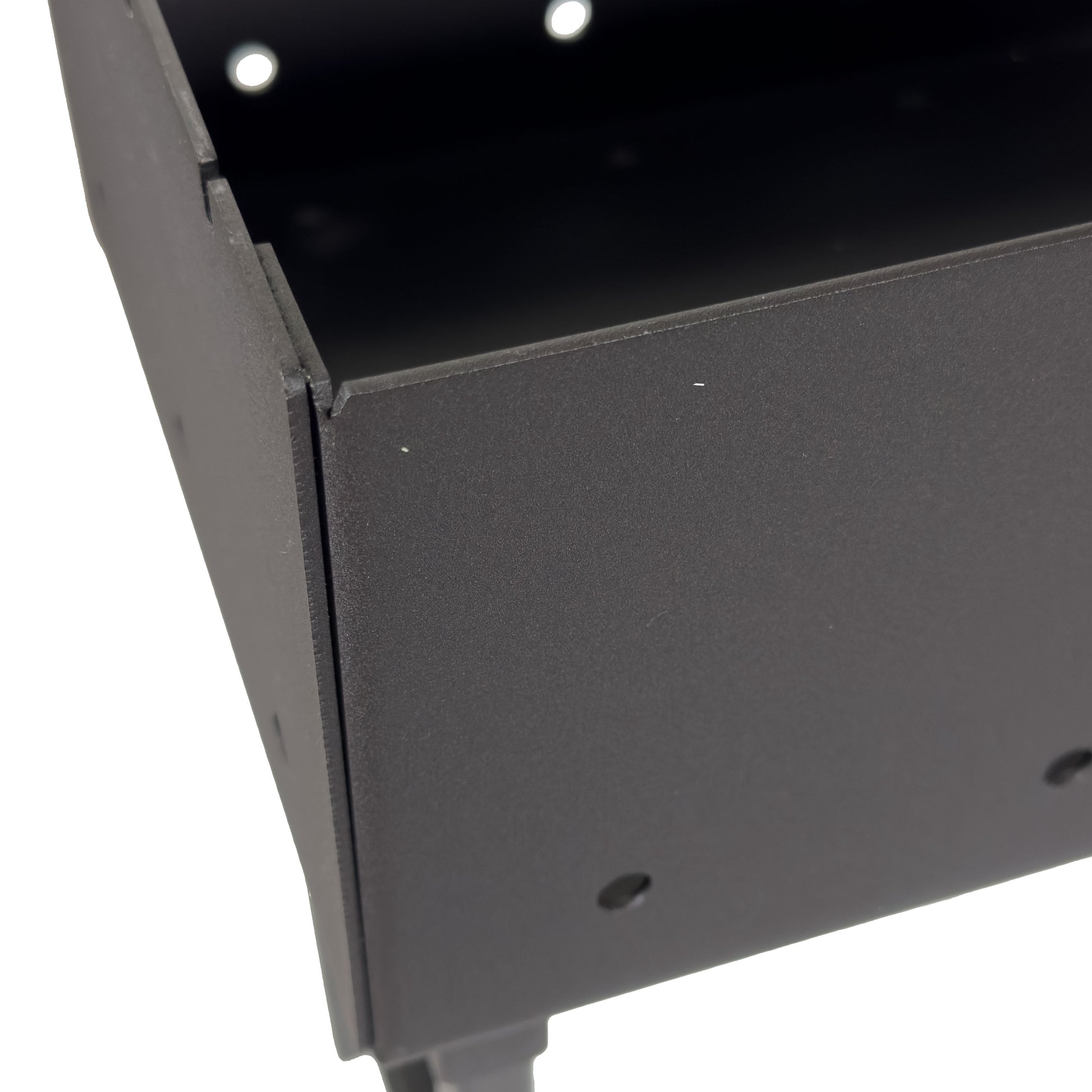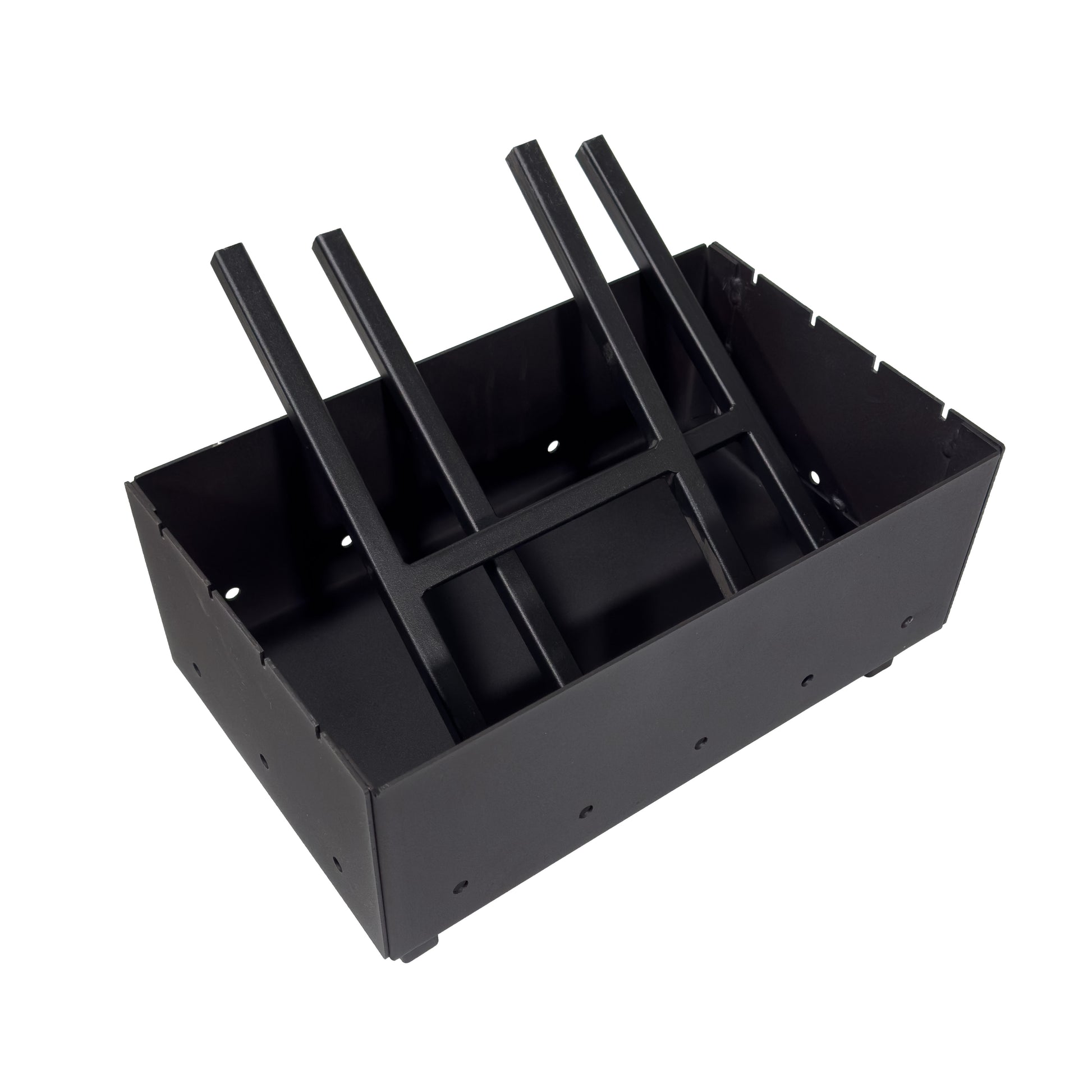 Gefertigt aus 2 mm starkem Stahl, punktet der Grill mit Stabilität und Langlebigkeit. Die Oberfläche ist mit schwarzer, hitzebeständiger Pulverbeschichtung versehen – für zusätzlichen Schutz und modernes Aussehen. Trotz seiner kompakten Größe bietet der Grill ausreichend Platz für Fleisch-, Fisch- oder Gemüsespieße.
