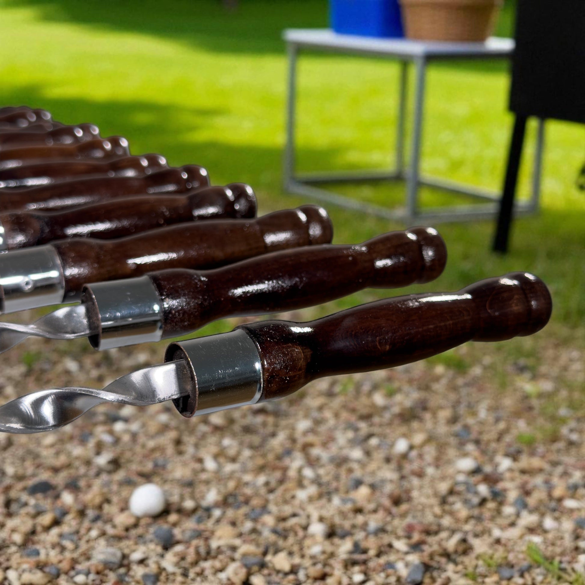 Diese Grillspieße sind mehrfach wiederverwendbar, leicht zu reinigen und besonders langlebig – perfekt geeignet für Holzkohlegrills, offene Feuerstellen, BBQs im Garten oder beim Camping.